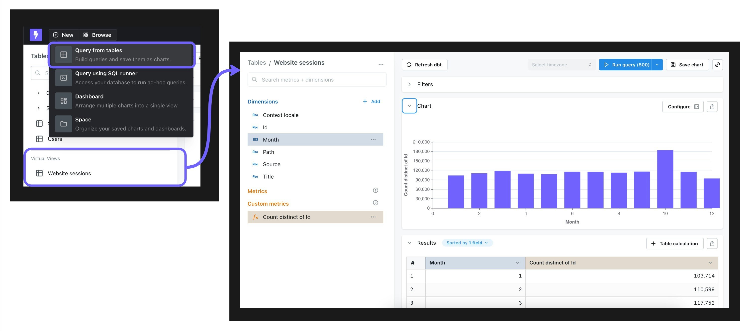 A Virtual View wonβt be saved to or managed in your dbt project.If youβre expecting to use this query regularly, we recommend writing it back to dbt.