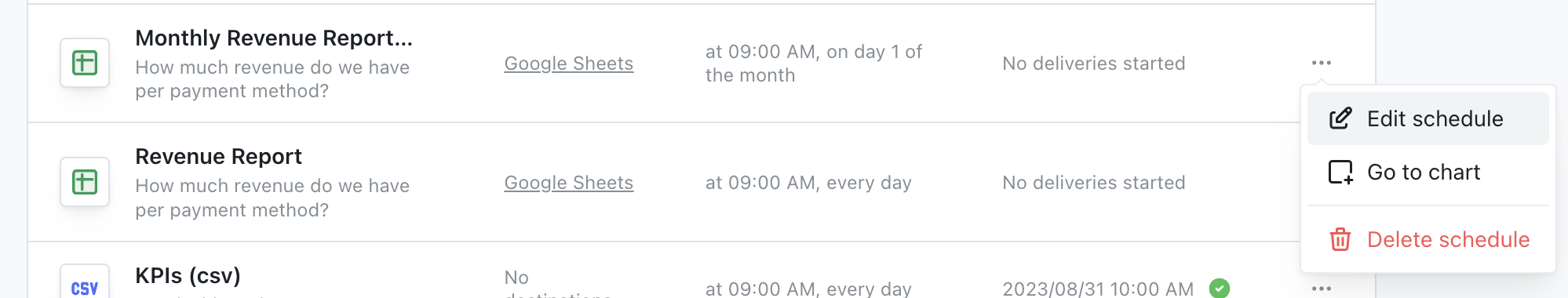 You can set up as many syncs as you like, and if you make any changes to the content, Lightdash will update the syncs the next time they’re sent.